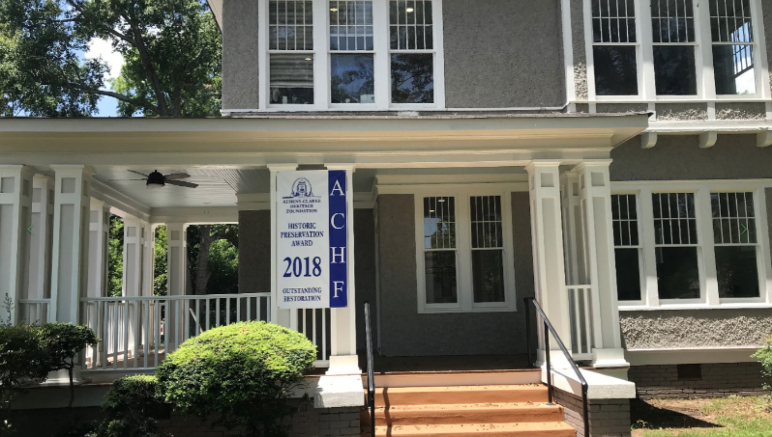 During the 5 month renovation, we worked with an interior designer to plan furniture layout, company logos and signs, and historic paint colors. Due to our efforts, we won the Best Historic Restoration award in June of 2018 given by the Athens Historical Society. Ours was the only award presented in that category for the year. Many long-time Athenians have since contacted us to tell us how they remembered the way the house used to look and how excited they were to see it brought back to its old grandeur.